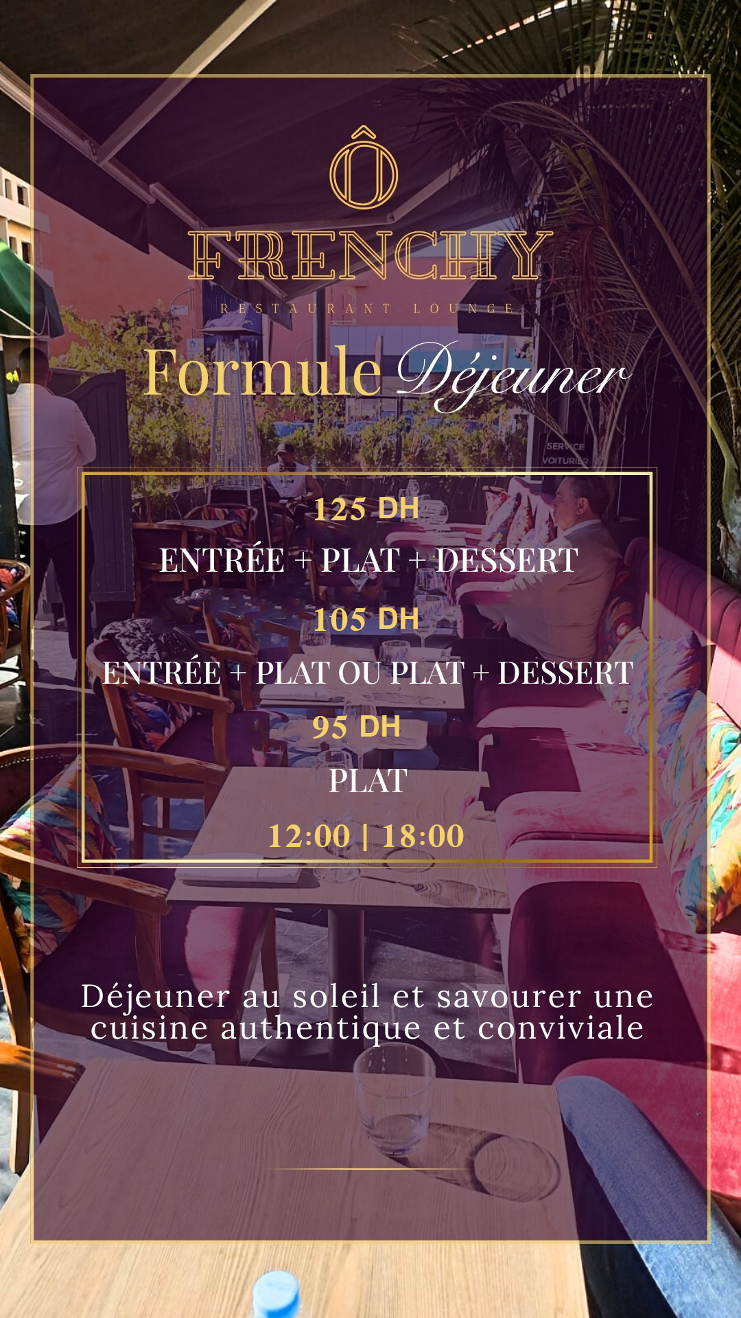 Chaque visite chez O’Frenchy Marrakech est une invitation à profiter d’une ambiance unique, d’une cuisine raffinée et de moments inoubliables. Que ce soit pour un déjeuner, un afterwork, une soirée festive ou un événement privé, nous vous accueillons pour transformer chaque instant en souvenir mémorable.